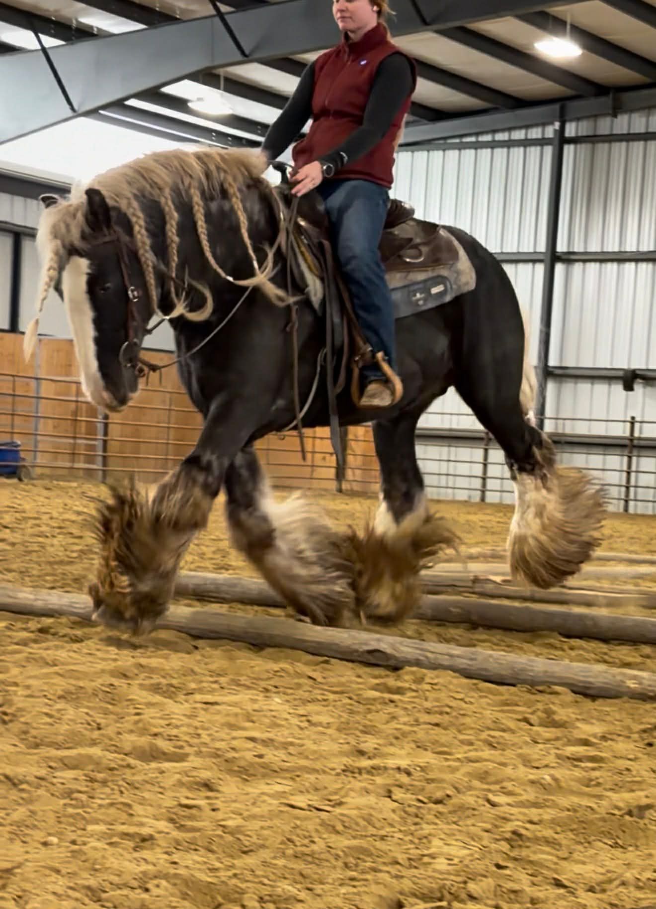 I always want to breed the best and improve what our mares lack. We bought this boy because of his dams bloodlines and what they add to our program and will add to our foals. Double Stuff aka Oreo adds bone, width, depth, hair, beautiful working shoulder, and his outstanding temperament! There is NOTHING we don't not like when it comes to Oreo! To top off all his amazing physical qualities, he has a heart of gold and is super sweet and very very smart. Oreo started training 6/2018 for driving/riding and is my main riding horse. I can also put green riders on Oreo and be completely at ease:)